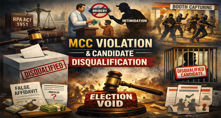 हालांकि, यदि MCC उल्लंघन Representation of the People Act, 1951 (RPA) या अन्य दंडात्मक कानूनों के तहत अपराध की श्रेणी में आ जाए, तब उम्मीदवार पर गंभीर कार्रवाई संभव है—यहाँ तक कि चुनाव निरस्त या अयोग्यता भी हो सकती है।