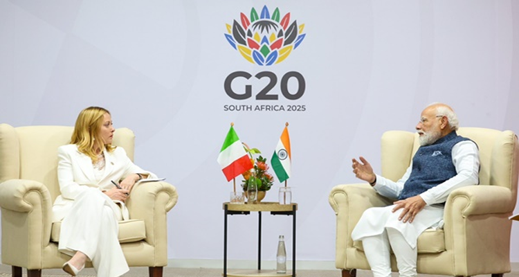 Johannesburg: प्रधानमंत्री नरेंद्र मोदी (PM Modi)और इटली की प्रधानमंत्री जॉर्जिया मेलोनी (PM Meloni) ने G20 सम्मेलन के दौरान मुलाकात की, जिसमें कूटनीतिक गर्मजोशी के साथ रणनीतिक साझेदारी का मजबूत संदेश नज़र आया। दोनों नेताओं में व्यापार, रक्षा, नवाचार, आर्टिफिशियल इंटेलिजेंस, अंतरिक्ष अनुसंधान और शिक्षा पर व्यापक बातचीत हुई।