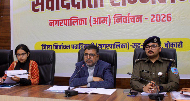 बोकारो। राज्य निर्वाचन आयोग द्वारा नगरपालिका (आम) निर्वाचन (Municipal Election) 2026 की घोषणा के साथ ही जिले के चास (Chas) नगर निगम एवं फुसरो (Phusro) नगर परिषद क्षेत्र में आदर्श आचार संहिता (MCC) तत्काल प्रभाव से लागू कर दी गई है। यह जानकारी मंगलवार को समाहरणालय सभागार में आयोजित संवाददाता सम्मेलन में जिला निर्वाचन पदाधिकारी (नगरपालिका) सह उपायुक्त अजय नाथ झा ने दी। मौके पर पुलिस अधीक्षक हरविंदर सिंह, उप विकास आयुक्त शताब्दी मजूमदार सहित वरीय अधिकारी उपस्थित थे।