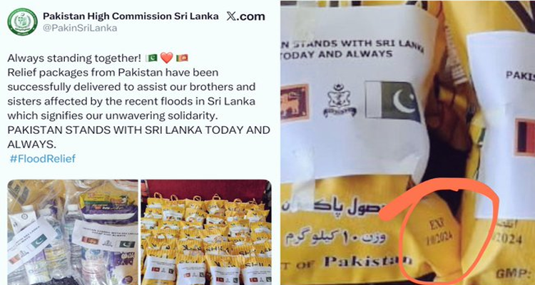 Images of the relief packets with visible expiry dates quickly went viral on social media, triggering anger and mockery among Sri Lankans and international observers. Many described the aid as “dumped waste” rather than relief, accusing Pakistan of disrespecting a nation in distress.