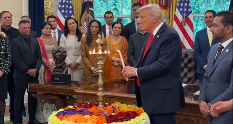 Washington DC: In a striking display of cultural diplomacy amid ongoing trade strains, former US President Donald Trump participated in Diwali celebrations at the White House, lighting diyas and extending warm wishes to India while calling Prime Minister Narendra Modi a “great friend.”