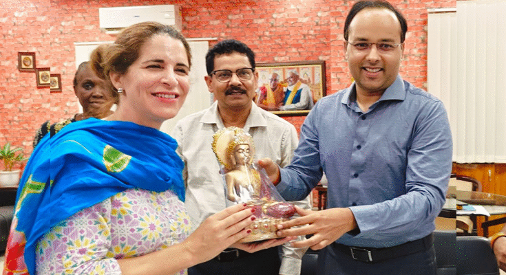 During a meeting with District Magistrate Shashank Shubhankar, the team was briefed on district initiatives like the Dr. Ambedkar Samagra Abhiyan, Beti Bachao Beti Padhao, and 100% child vaccination efforts. The DM highlighted progress in Mahadalit settlements, especially in women’s skill development and adolescent health through the Udaan program in Tikari block.